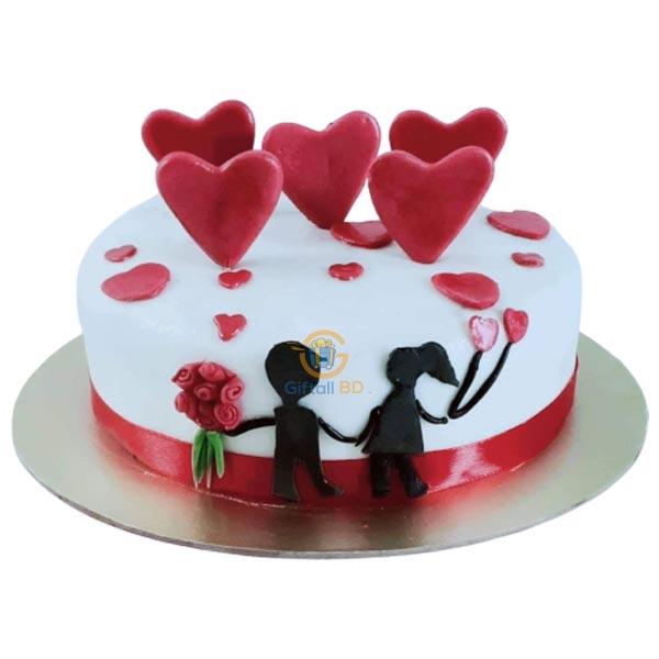 Send Red velvet round shape cakes with heart design for your loved one from Cake World.