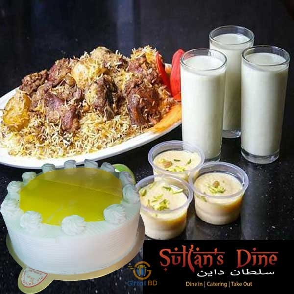 Send Sultan Dine kacchi biryani with 500gm vanilla cake for your loved person in Dhaka. Online food delivery now your hand with touch. Special day needs special food so order us special days as like Valentines, pohela boishakh, mothers day, fathers day and any special occasion. This package has-